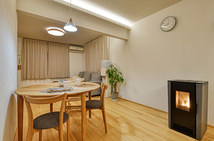 ガス式の暖房で、部屋全体がやさしい暖かさに包まれます。