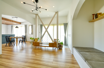 S様ご家族からは、「想像以上に素敵な仕上がりで、子どもたちは居心地のいいヌックで楽しく過ごしてます。滑りにくく、汚れに強いフローリングにしたので、たくさん走り回っても安心です。収納スペースもたっぷり作っていただいたので、ここにはあれを収納しよう、あそこには何を飾ろうかな、など考える時間を楽しんでいます。これからも大切に住まわせていただきます。本当にありがとうございました。」とご感想をいただきました。