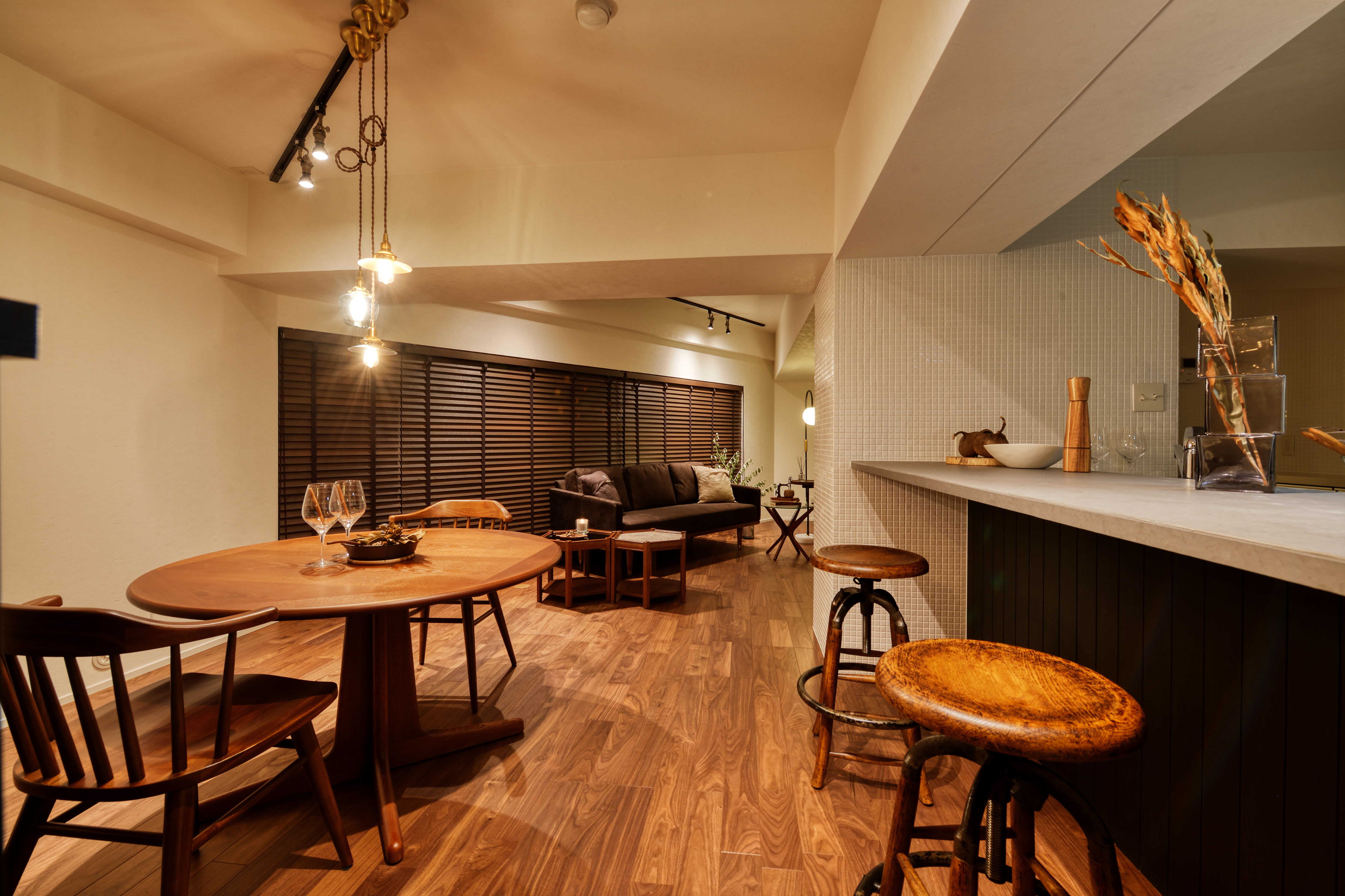 マンションの限られた空間を活用し、隠れ家のような落ち着く空間に仕上がっています。